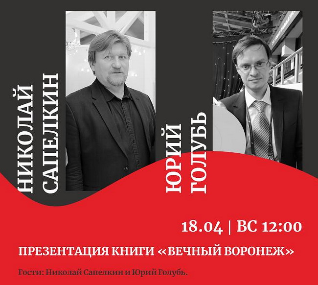 Презентация книги Николая Сапелкина и Юрия Голуба «Вечный Воронеж» состоится в магазине «Амиталь на Пушкинской» в воскресенье, 18 апреля, в 12:00.