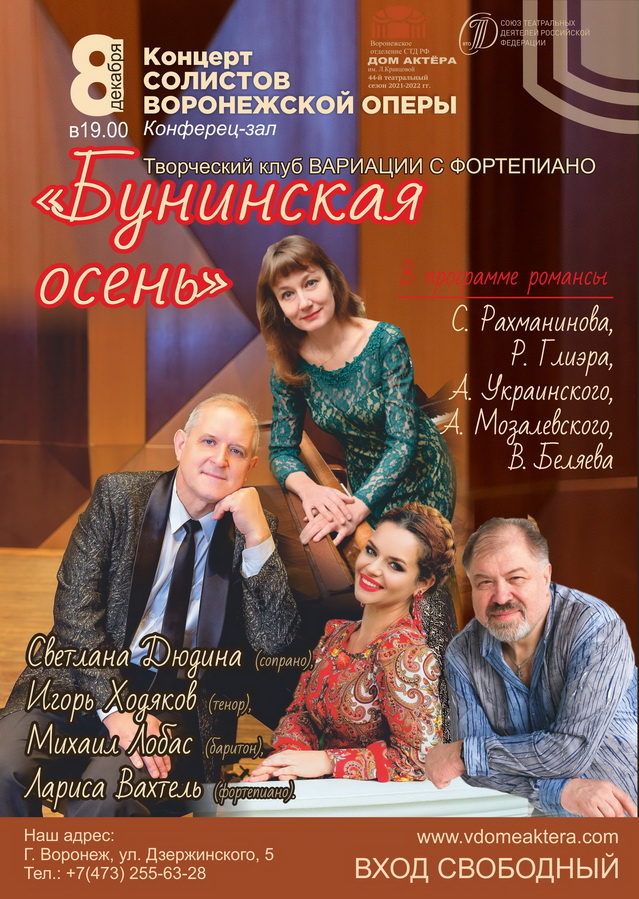 Воронежский Дом актёра приглашает на «Бунинскую осень»