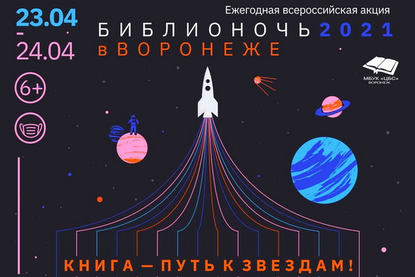 24 апреля Воронежская областная юношеская библиотека имени В. М. Кубанёва примет участие в ежегодной социально-культурной акции «Библионочь-2021». Мероприятия акции на тему «Книга – путь к звёздам» будут посвящены науке, технологиям и 60-летию со дня первого полёта человека в космос.