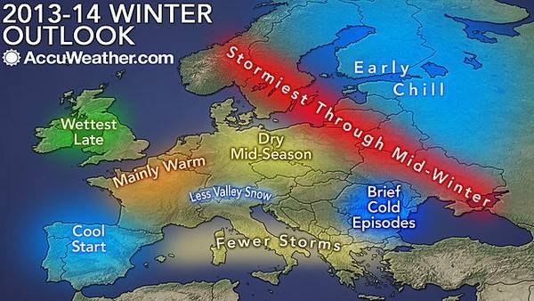 Что ожидает Европу, Россию и Воронеж предстоящей зимой? Служба Accuweather опубликовала предварительный прогноз развития синоптической ситуации вплоть до марта 2014 года. Подробно описываются погодные условия во время проведения Олимпиады в Сочи с 7 по 23 февраля.