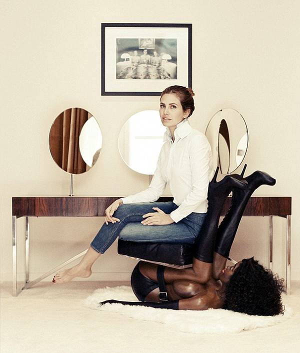 В российском модном блоге Buro 24/7 появился снимок подруги Романа Абрамовича 32-летней Дарьи Жуковой, восседающей на почти обнаженной черной женщине, служащей подставкой для кресла. Позже редактор блога Мирослава Дума разместила этот снимок еще и в сети Instagram.