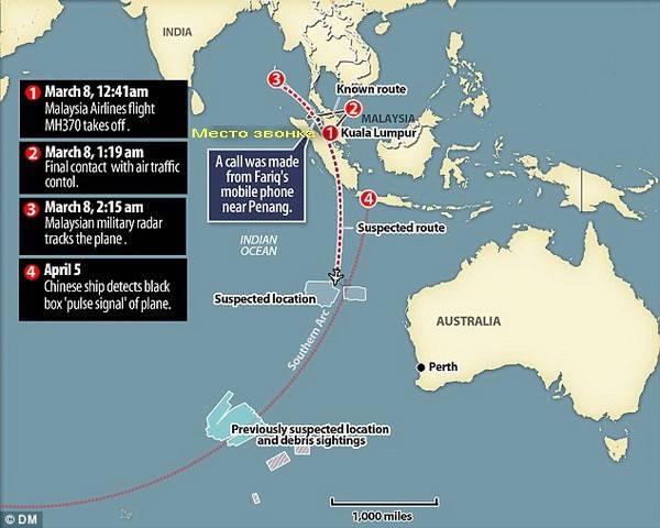 Пилот пропавшего «Боинга» пытался позвонить по мобильнику после исчезновения самолета, но связь резко оборвалась