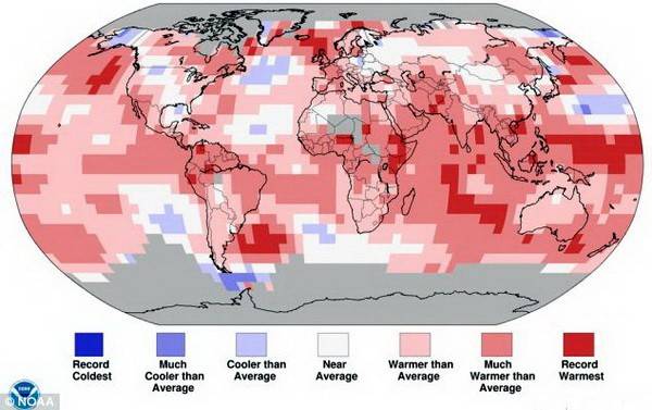 Национальное управление океанических и атмосферных исследований США (National Oceanic and Atmospheric Administration, NOAA) обнародовало данные наблюдений за температурой на Земле в июне 2014 года. Оказалось, что установлен новый рекорд. Никогда еще июнь не был таким теплым. А до этого аналогичные рекорды были установлены в мае и апреле.