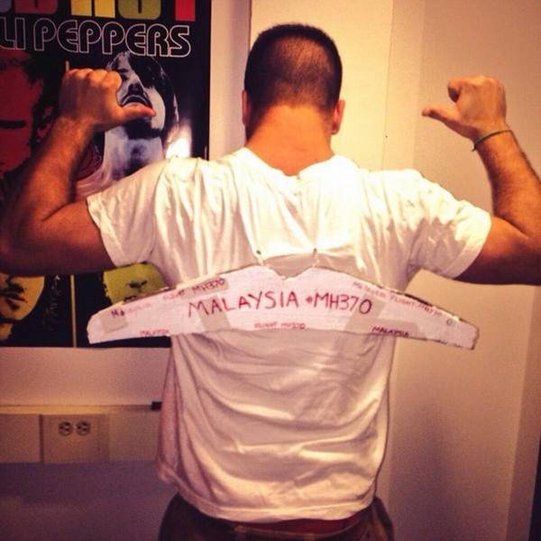 Один умник прикрепил себе на спину крылышки с надписью Malaysia MH370.