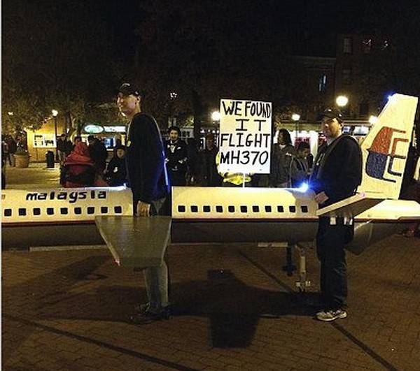 Двое парней соорудили макет Боинга и таскали его по улицам, сообщая прохожим: «Мы нашли пропавший самолет».