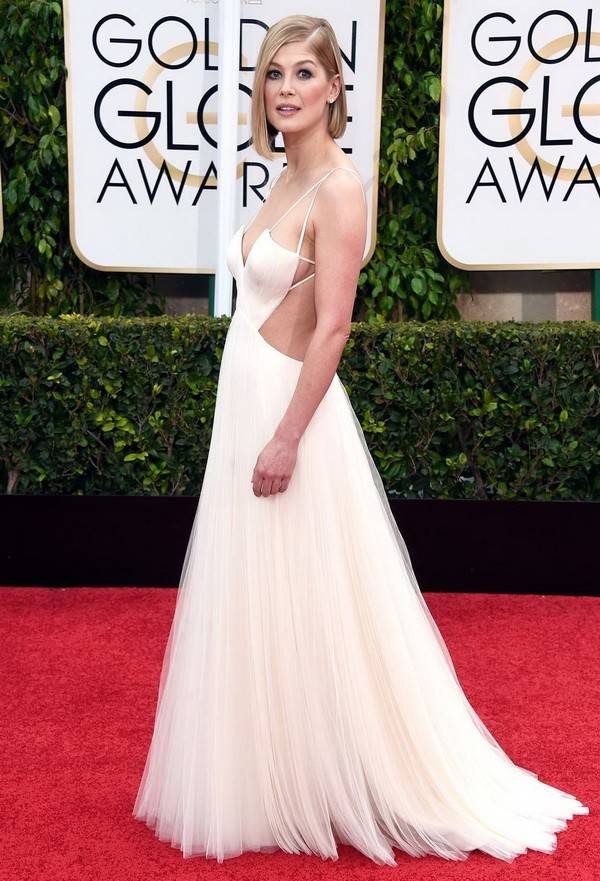 Розамунд Пайк в платье от Vera Wang – просто катастрофа. Это платье будет рискованным в любой среде, а на красной ковровой дорожке это просто неприлично.