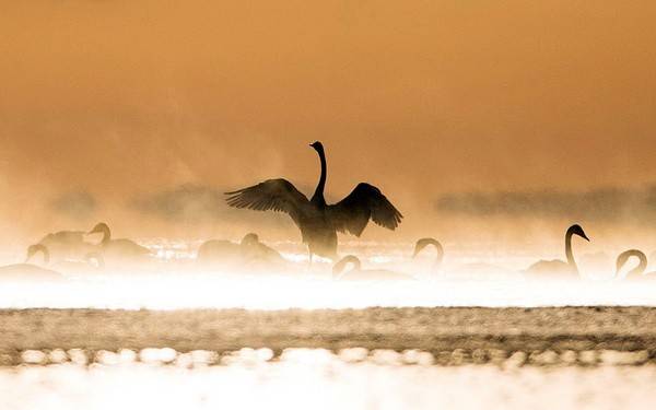 Лебеди на озере Цинхай в одноимённой китайской провинции.