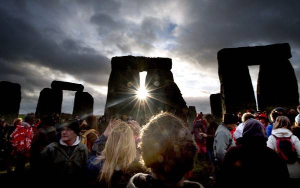Люди собираются возле Стоунхенджа (Великобритания), чтобы увидеть восход солнца самого короткого дня года.