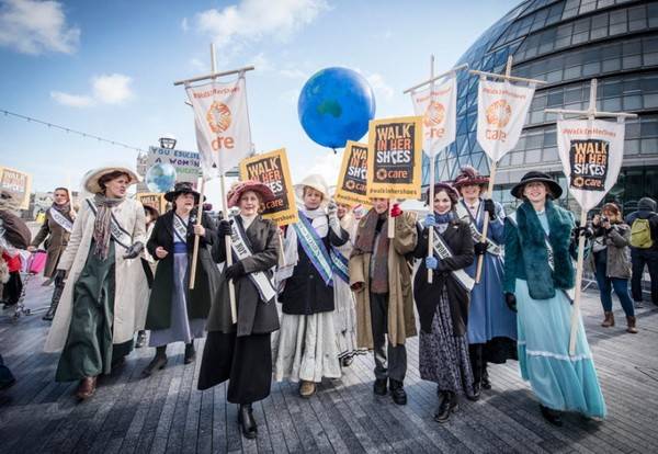 Сотни людей собрались 8 марта в Лондоне (Великобритания), чтобы принять участие в марше Walk In Her Shoes. Акция была организована в поддержку женщин и девочек в странах третьего мира, где представительниц слабого пола заставляют носить воду, подрывая здоровье.