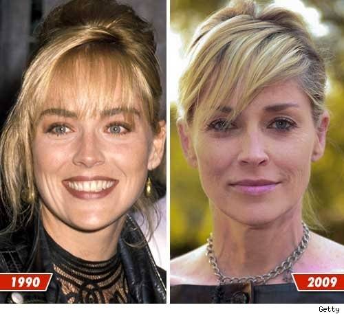 Шэрон Стоун. На снимке слева ей 32 года, на снимке справа – 51