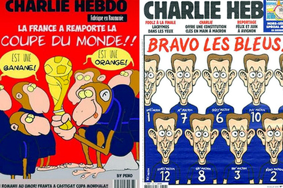 Журнал Charlie Hebdo открестился от карикатуры, в которой сборную Франции изобразили в виде обезьян