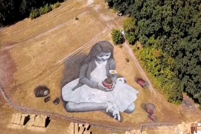 Художник Гийом Легро (Saype) после Воронежа нарисовал гигантскую девочку в Женеве