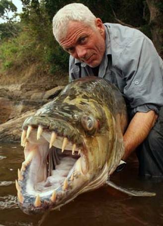 Вторая по полноводности река мира - Конго – таит еще немало непознанного в своих таинственных глубинах. Об этом напомнил удачливый рыболов Джереми Уэйд, поймав одну из самых опасных в мире рыбин. Как сообщает газета The Sun, экземпляр терапона (тигровой рыбы), которую вытащил Джереми, оказался длиной более полутора метров (обычно эти родственники пираньи не вырастают более 80 см). Зубы и чудовища такой же длины, как у большой белой акулы. Вес – почти полцентнера.
