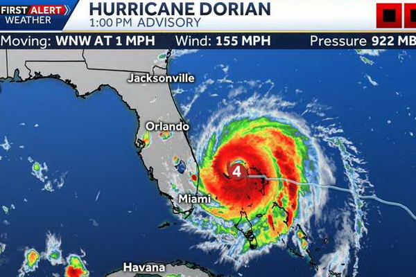 Для жителей юго-восточного побережья США наступил волнующий момент. Ураган «Дориан», разоривший северные Багамы, практически остановился. По данным Национального центра ураганов в Майами на 20:00 мск, максимальные устойчивые ветры в урагане уменьшились до 155 миль в час (250 км/час). Из пятой категории «Дориан» перешёл в четвёртую.