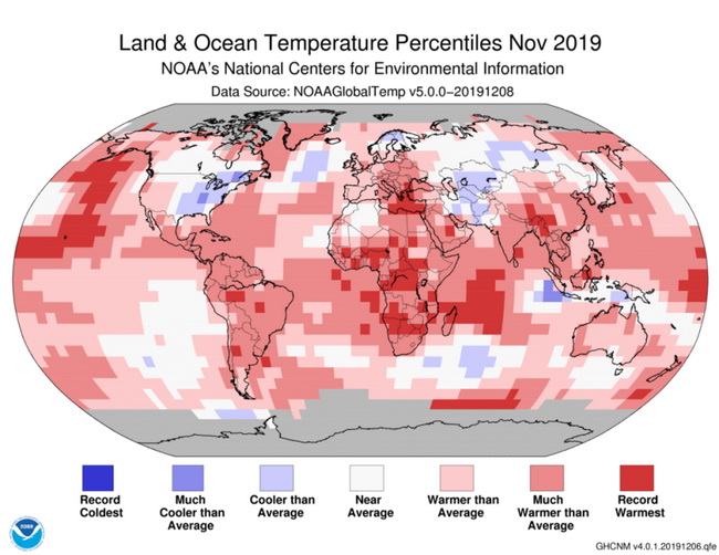 2019 год станет вторым самым жарким за всю 140-летнюю историю метеонаблюдений. Вероятность этого 85%. При этом осень на планете также оказалась второй самой тёплой в истории. А до этого завершающийся год отметился самыми горячими июнем и июлем.