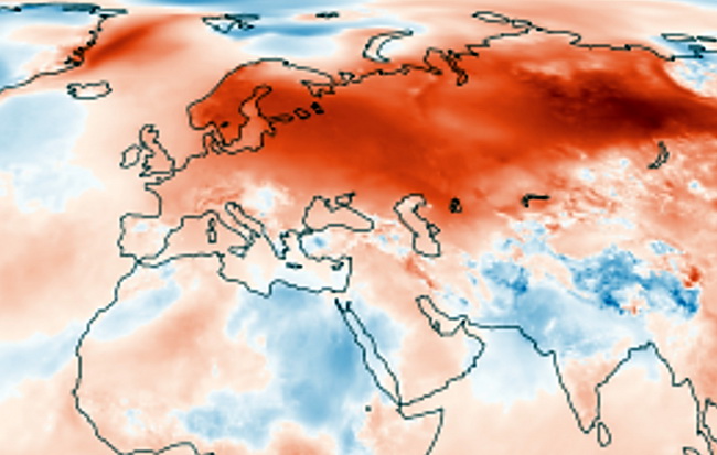 Небывало высокие, экстремальные уровни температуры были на большей части северо-восточной Европы, особенно в Российской Федерации. Во ряде регионов страны средняя температура была на 6°C выше средних значений за 1981-2010 гг.