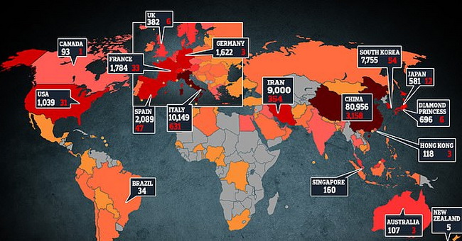 Самая сложная и опасная ситуация складывается в Италии (плюс 2313 заболевших и 196 умерших за последние сутки), Иране (+ 958 и +63), Испании (плюс 493 случая и 13 новых смертей), а также в Южной Корее, Франции, Германии, Великобритании, США, Японии, Швейцарии. В Китае, откуда пошла болезнь, за сутки отмечено 36 новых случаев, 22 заболевших скончались.
