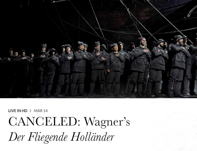 «Мы с сожалением сообщаем нашей аудитории, что все спектакли Met были отменены до 31 марта. Запрет вступает в силу немедленно. Спасибо за ваше терпение и понимание в это трудное время», – такое обращение к зрителям появилось на сайте театра Метрополитен-опера. Дирекции пришлось отменить даже трансляцию спектакля «Летучий голландец» в HD-кинотеатры.