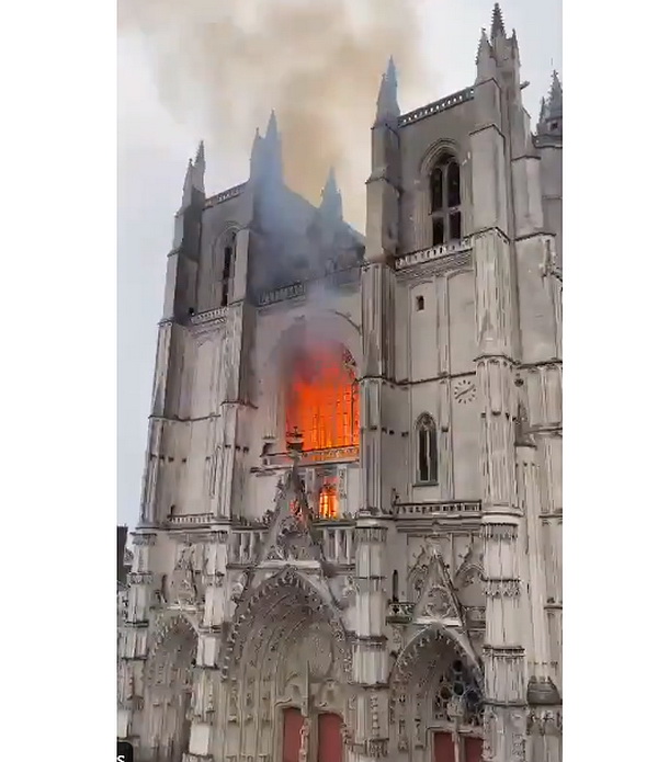 Через шесть часов после начала пожара огонь в Нантском соборе Святых Петра и Павла всё ещё не погашен. Известно, что ущерб огромен: полностью сгорел знаменитый орган XVII века. Глава пожарно-спасательной службы департамента Атлантическая Луара Лорана Ферле сообщил, что в соборе были обнаружены три очага возгорания. Прокуратура Нанта открыла дело об умышленном поджоге.