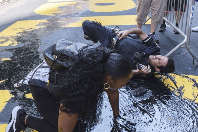 Две женщины арестованы за порчу чёрной краской гигантской надписи «BLM» на пятой авеню в Нью-Йорке. При попытке задержания злоумышленниц серьёзную травму получил офицер полиции.