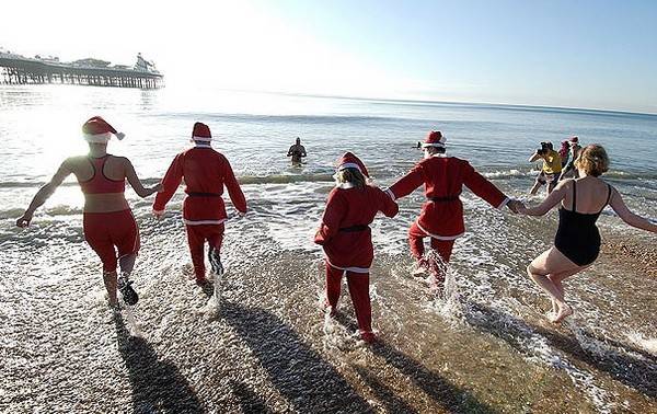 В Англии, Ирландии, США принято в день Рождества купаться в океане. Вот как это выглядит в Нью-Йорке, в районе Брайтон-Бич, где обосновались выходцы из России.