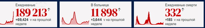Посмотрите теперь на свежие данные по заболеваемости, госпитализации и летальности. Все три показателя устремились вверх с пугающей скоростью. Национальная служба здравоохранения Великобритании заявила, что начнет открывать временные полевые госпитали для сдерживания возможного притока пациентов.