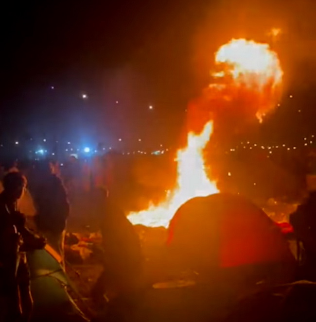 На видео видно, как одновременно горит несколько костров, по всему лагерю слышны взрывы. Пожарные команды боролись с огнём, когда испуганные посетители фестиваля пытались покинуть место происшествия.