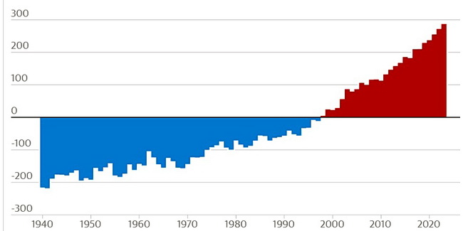 В 2023 году океаны поглотили дополнительно 15 зеттаджоулей тепла по сравнению с 2022 годом. Для сравнения, человечество использует около половины зеттаджоуля энергии в год для подпитки всей мировой экономики. Всего океаны поглотили 287 зеттаджоулей в 2023 году.