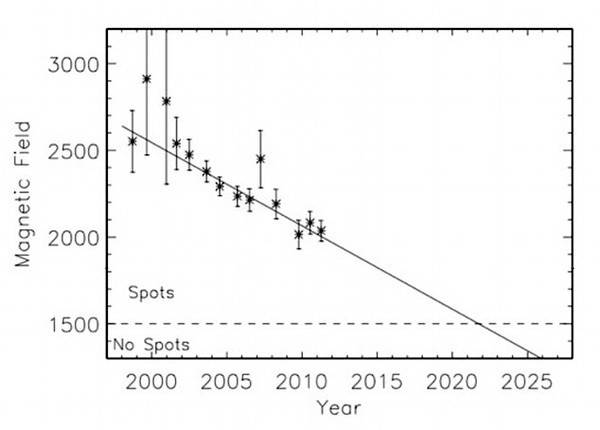 С выводами британских ученых согласен ведущий ученый НАСА Дэвид Хэтэуэй. По его мнению, нынешний солнечный цикл, начавшийся в 2009 году, будет очень слабым. После 2020 года у нашего светила не останется сил на образование пятен и выброс протуберанцев.