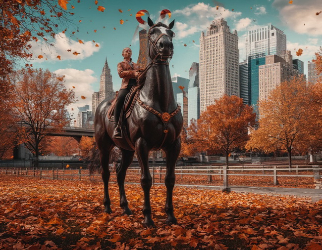 Часть сгенерированных картинок напоминает о том, что по восточному календарю это год лошади.
