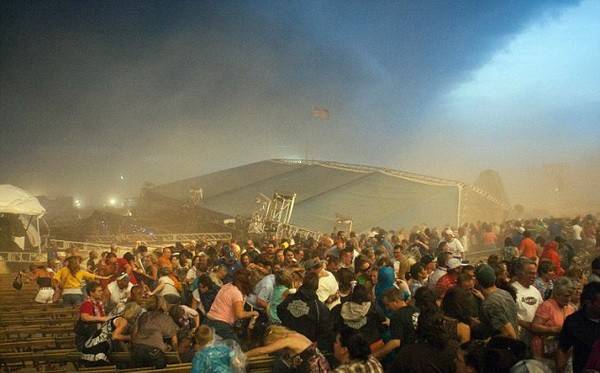 По оценкам, сила ветра в субботу в Индианаполисе достигла 110 км в час. Трагедия произошла за пару минут до того, как на сцену должен был выйти популярный дуэт Sugarland.