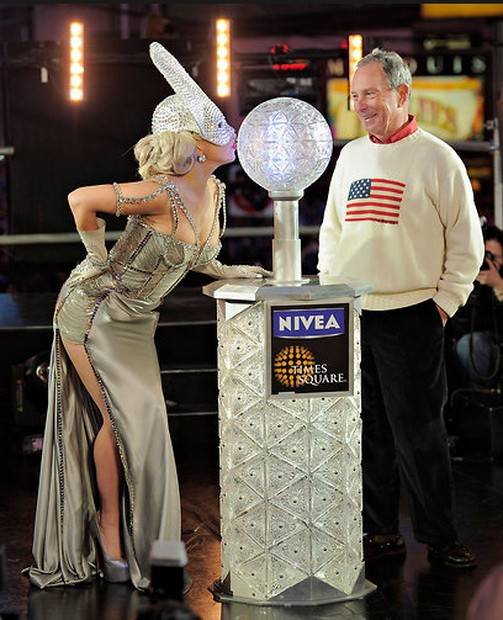 На этот раз году кнопку, которая привдит в движение хрустальный шар, нажали мэр Нью-Йорка Майкл Блумберг и сверхпопулярная исполнительница поп-музыки Леди Гага. Публика тепло приветствовала поп-диву. В концерте на Таймс-сквер также приняли участие Джастин Бибер, Карлос Сантана и другие звезды.