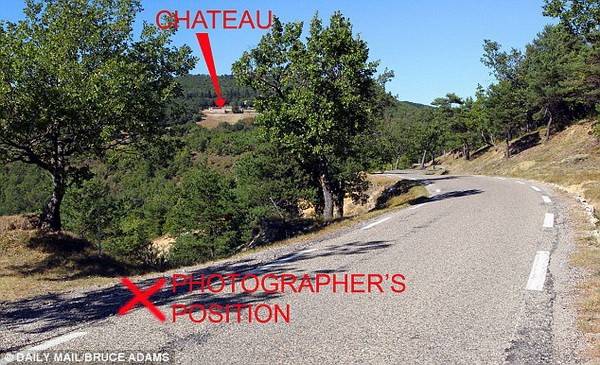 Скорее всего, снимки были сделаны с этого места на дороге, примерно в километре от замка, где отдыхали герцог и герцогиня Кембриджские.