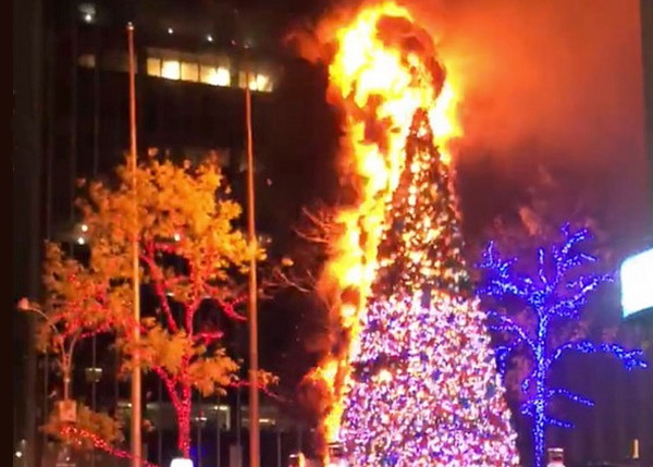 В центре Нью-Йорка, на Шестой авеню, вскоре после полуночи запылала и сгорела 15-метровая Рождественская ёлка. Ведущий Fox News Брайан Килмид сказал, что считает сожжение новогоднего дерева «преступлением на почве ненависти».
