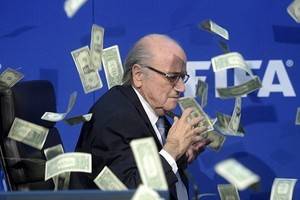 Президент ФИФА Зепп Блаттер пытался схватить поддельные банкноты, брошенные в него британским комиком в ходе сегодняшней пресс-конференции в Цюрихе. Англичанин Саймон Бродкин (он же - Джейсон Бент, он же - Ли Нельсон) спокойно подошел к сидящему за столом Блаттеру и, положив деньги на стол, сказал: «Это для Северной Кореи 2026».
