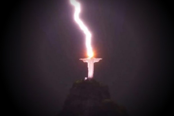 В статую Христа-Искупителя на горе Корковадо в Рио-де-Жанейро ударила молния. Это жуткое явление запечатлел местный фотограф. Снимок мгновенно сделался невероятно популярным во всемирной паутине.
